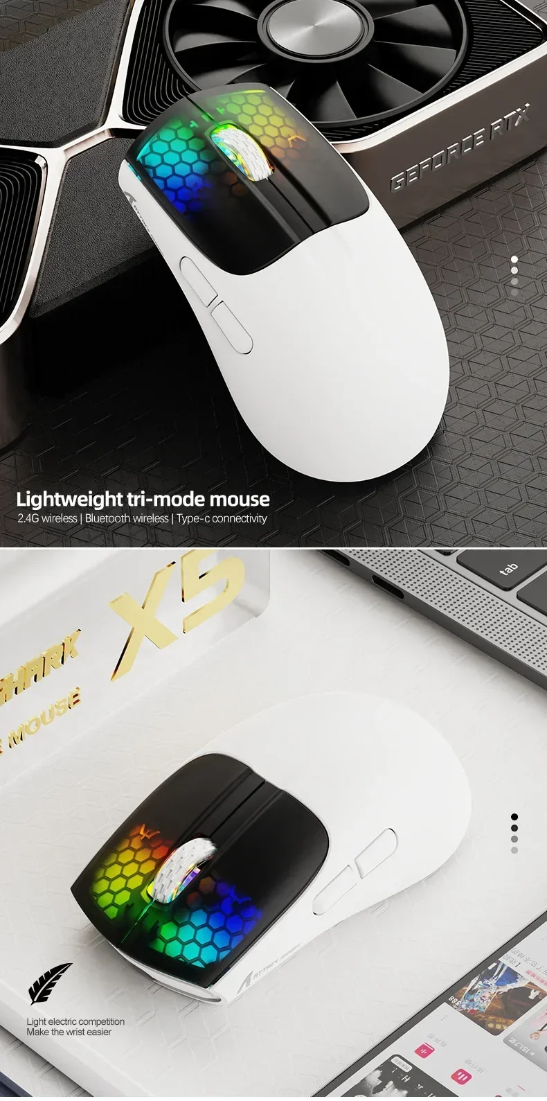 Attack Shark X5 2.4G Wireless Bluetooth Mouse 3 Modes RGB Â PAW3212 Sensor 4000DPI Optical Mouse for PC Laptop Office Gaming