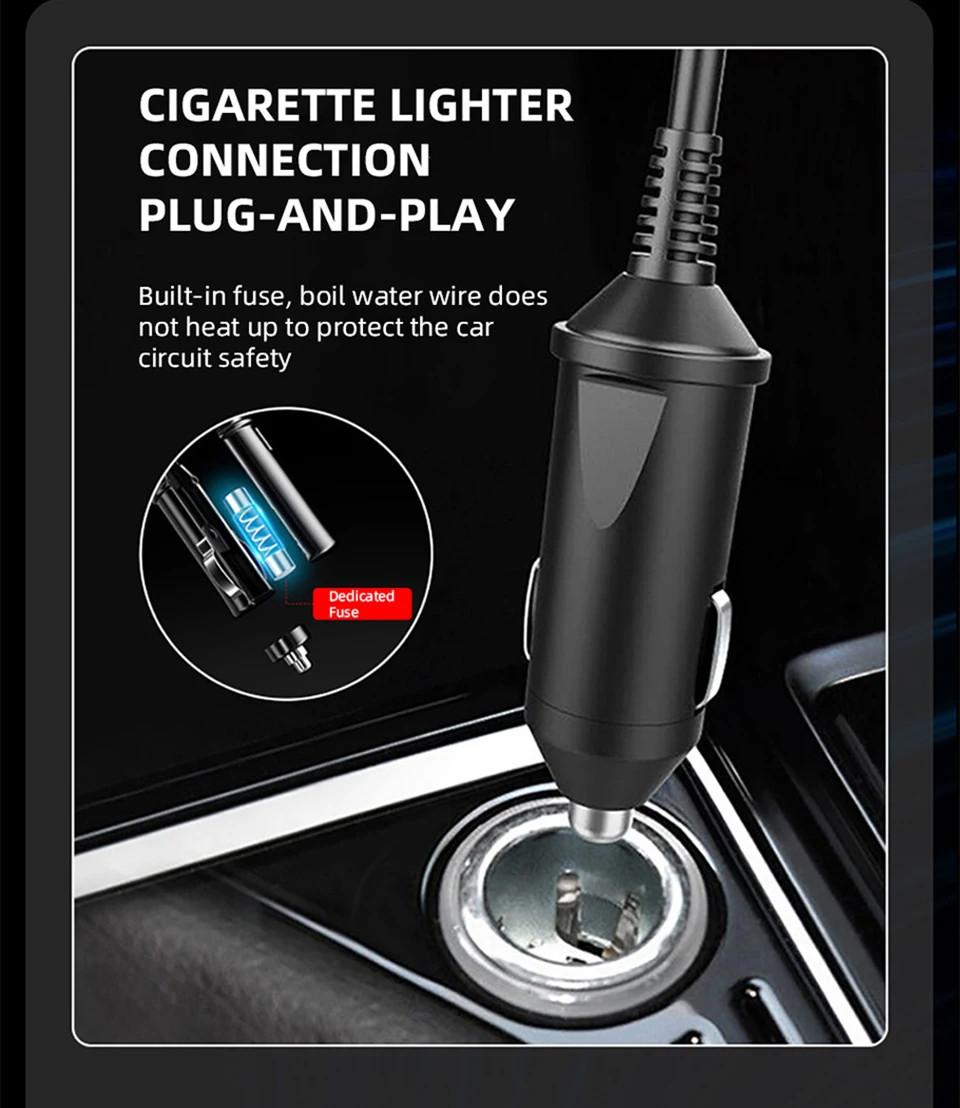 Cigarette lighter connection, built-in fuse The boiling water line is not heated to protect the safety of the car circuit