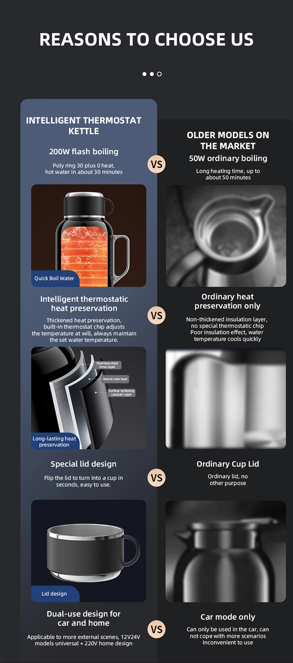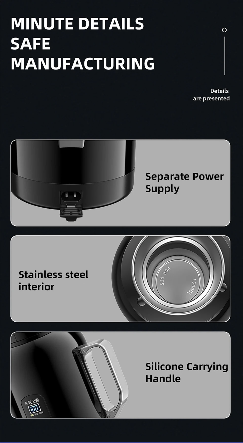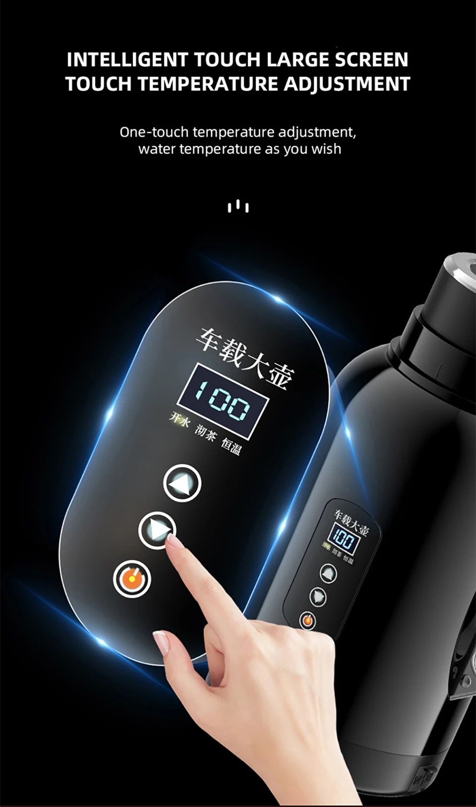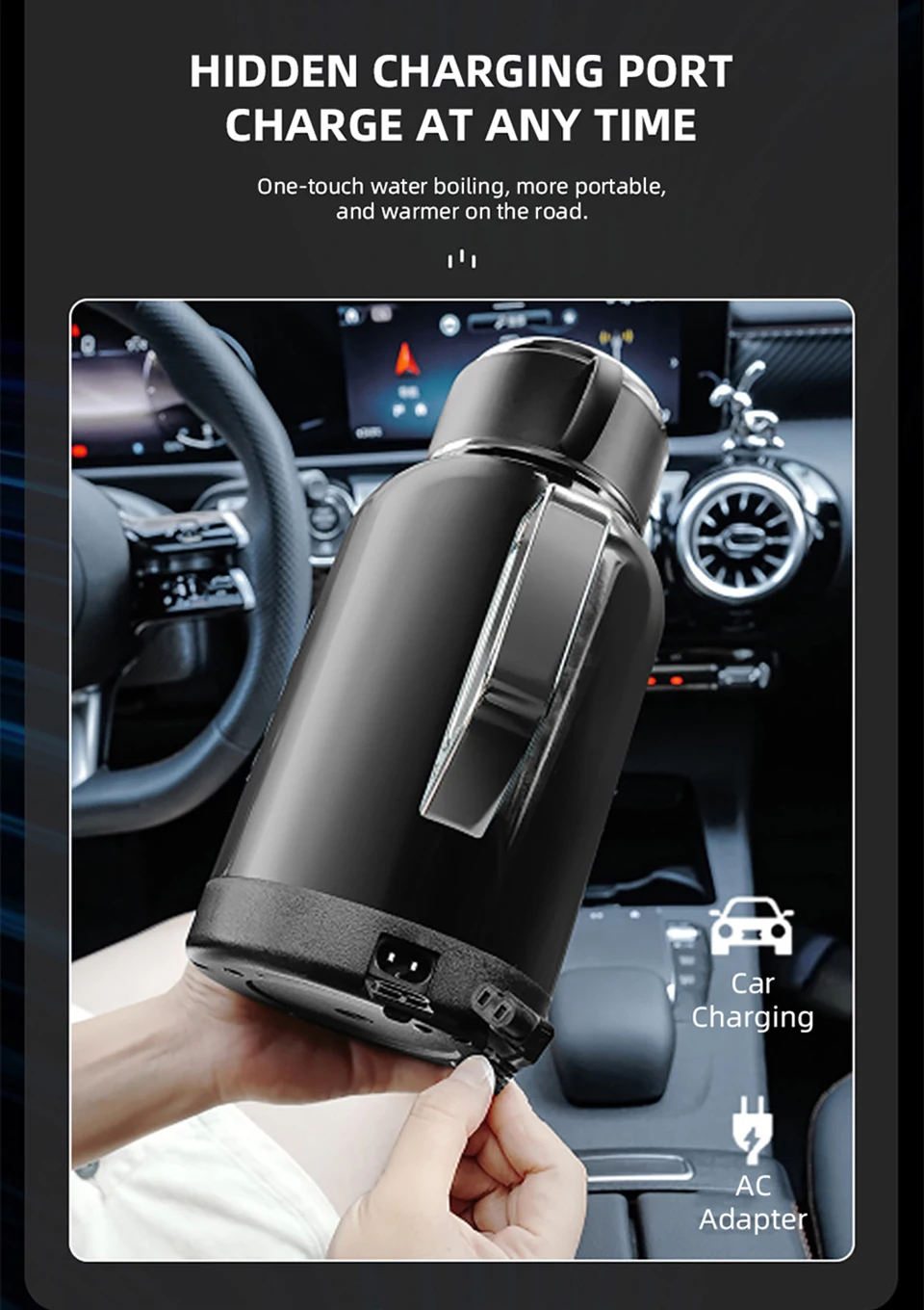 The cup lid can be used as a cup, 1300ML ultra large capacity multifunctional intelligent temperature control car kettle.Fast boiling water, 12V/24V universal.