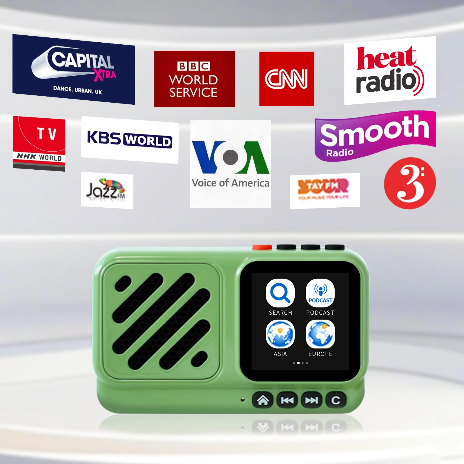 40k INTERNET RADIOS:Listen to more than 40,000 internet radio stations from all over the world via 2.4 WiFi or SIM card, with clarity and no noise, categorized by continent, country, province, city, station type and popularity. Connect to the Internet and listen to tens of thousands of radio stations for free, and bookmark your favorite stations with one click. About10 million podcast episodes, includes Spotify and Apple Podcasts