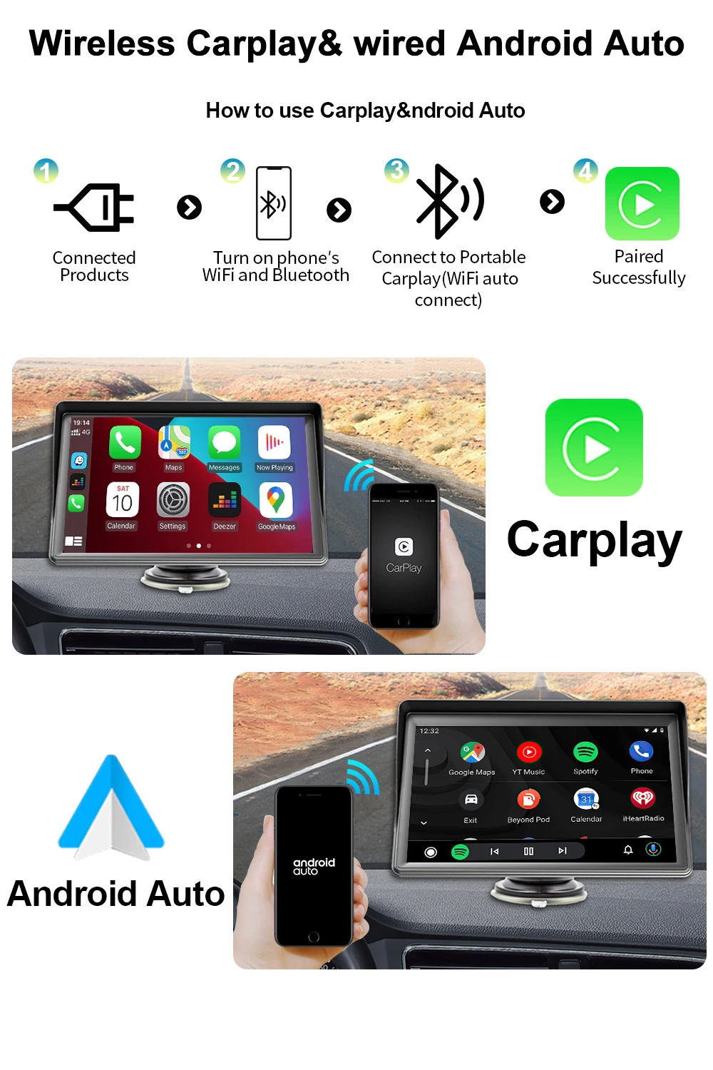 4. Wireless Carplay & Android auto, suitable for Apple and Android mobile phones, you can synchronize mobile phone pages when you get in the car