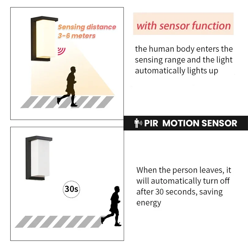 - Features:Â Led Outdoor Wall Light Waterproof IP66 Motion Sensor