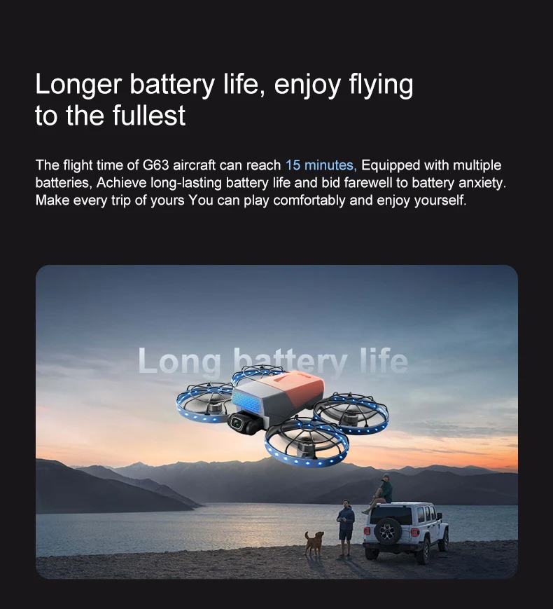 - Subject Tracking & QuickShots: Effortlessly capture stunning vlogs as G63 smartly follows you. Getting professional footage has never been easier with eight creative QuickShots modes on this drone with camera.