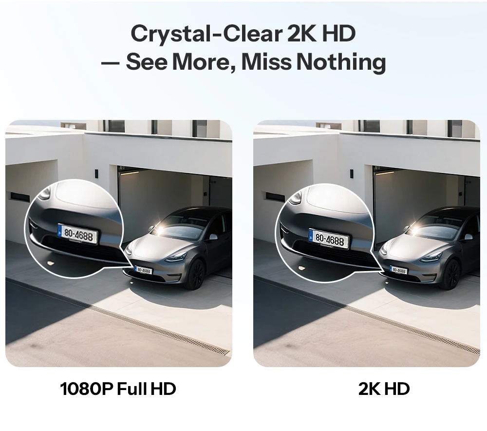 Step up your home security with 2K high-definition resolution delivering sharper, more detailed images than traditional 1080p cameras. Whether it’s a license plate at the edge of your driveway or a face at your doorstep, every detail is captured with stunning clarity.