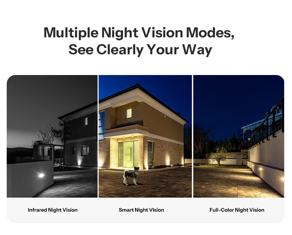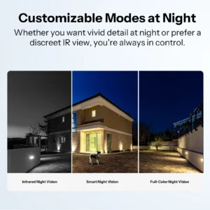 Select the night view that best suits your needs. It offers different night vision modes — Full-Color, Infrared (Black & White), and Smart Night Vision, to ensure clear visibility in any lighting condition. Whether you want vivid detail at night or prefer a discreet IR view, you’re always in control.