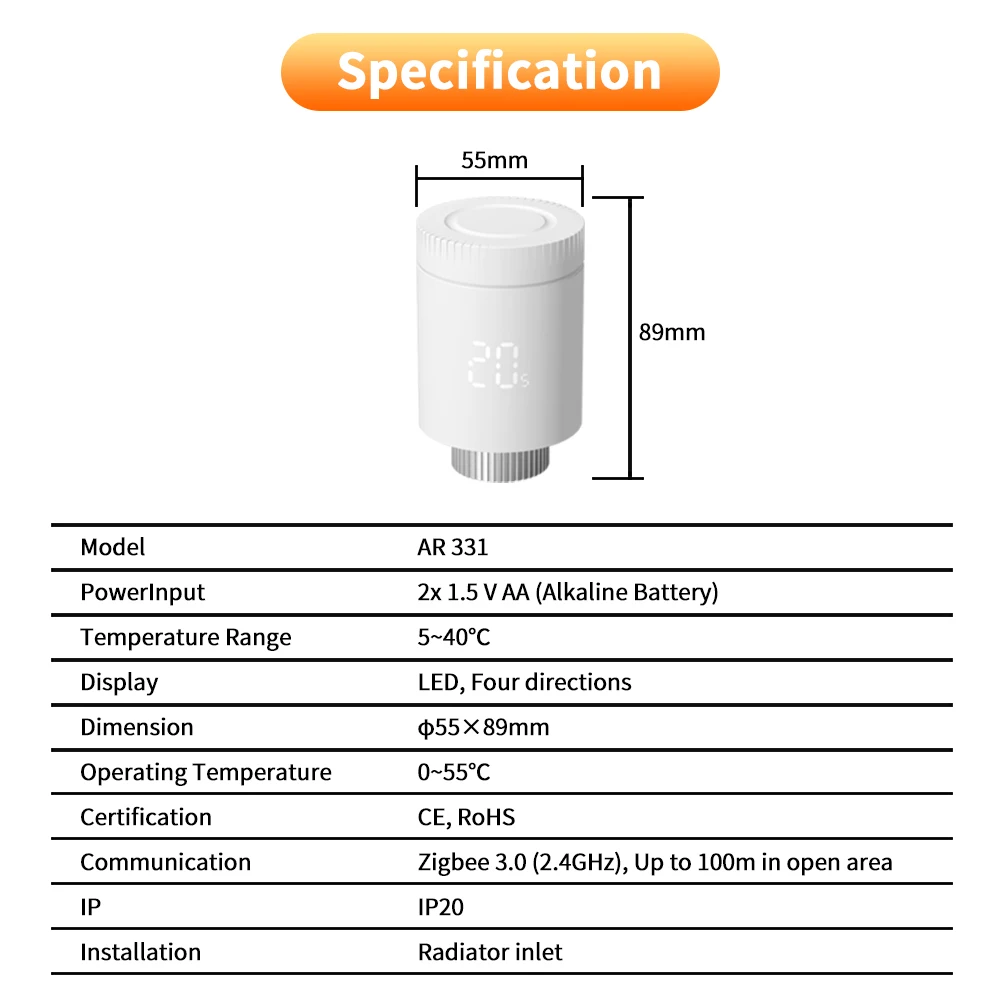 - Radiator valve:Â zigbee 3.0 thermostatic radiator valve