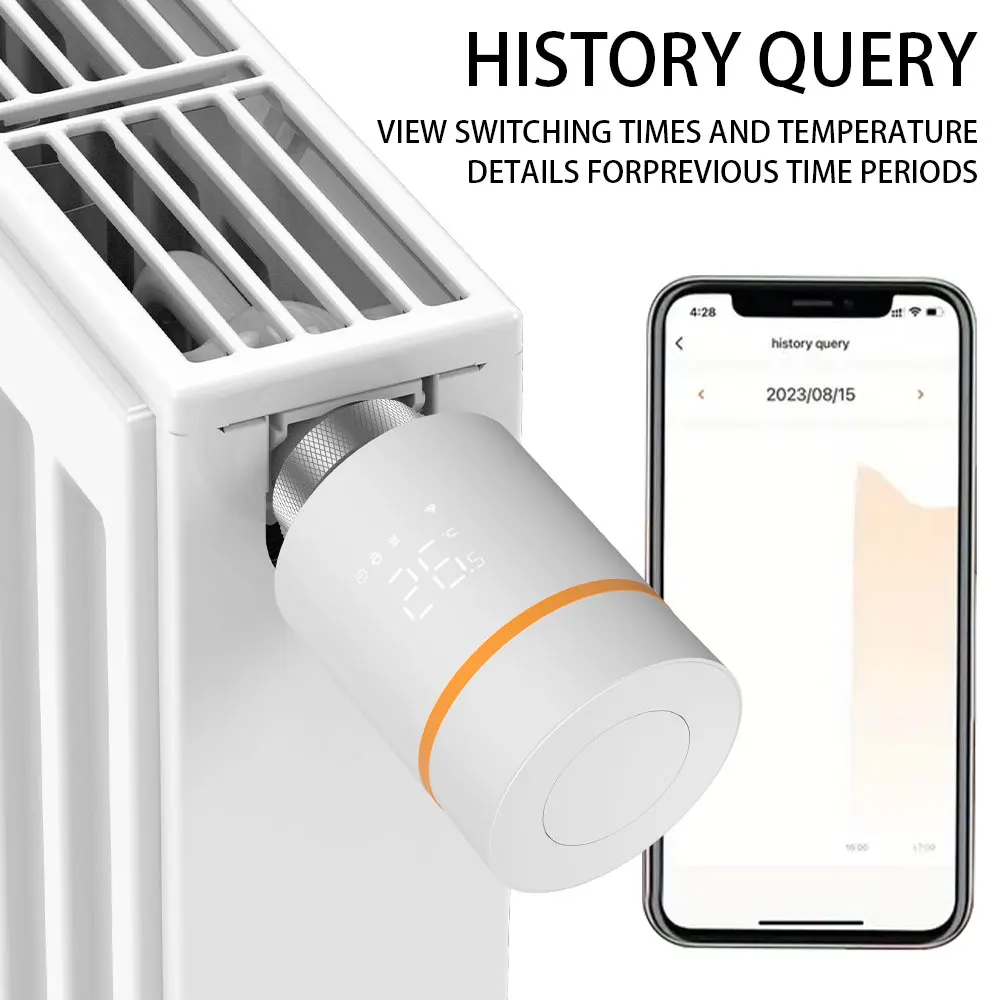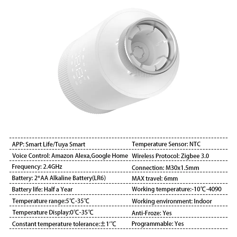 [ Hand Free Voice Control ] -Compatible with alexa echo ,google home ect ,a simply command to voice control the TRV. [ Programmable Weekly Schedule&Time Period ] -7day programmable weekly schedule ,4 time period/day can be setting on app. [ Linkage Function ] -It can linkage with other smart appliance in your home to create smart theme like leave home mode,back home mode,dinner mode,sleeping mode ect. [ Child Lock Function ]-Child Lock Function avoid kid`s operation on it. Make sure your home in smart and safe status. [ Group-Control Function ] -TRV can be set in group with valve in different room, realize group control function in special scene.【History query】-View switching times and temperature details for previous time periods