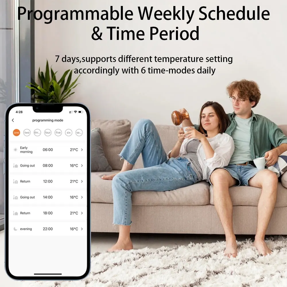 [ APP Remote Control ] -Download smart life /Tuya smart APP on your phone&Tablet to control the radiator thermostat valve anywhere/anytime.