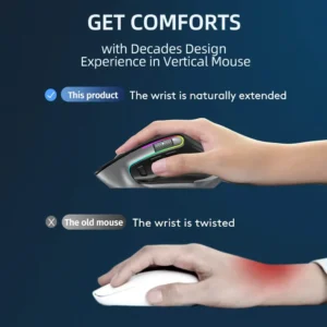 [Ergonomic Wireless Mouse] This ergonomic mouse helps the wrist be more naturally extended instead of twisted. Besides, comfortable shape and intuitive controls work comfortably with a perfectly sculpted shape and ideally placed thumb wheel and controls